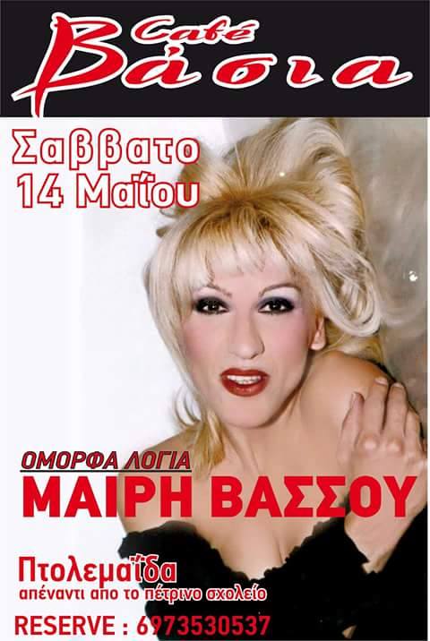 Η Μαίρη Βάσσου στο cafe Βάσια στην Πτολεμαΐδα, το Σάββατο 14 Μαΐου