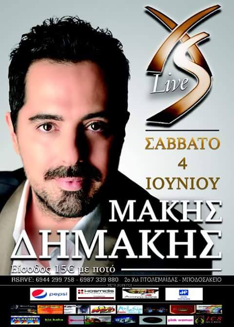Ο Μάκης Δημάκης Live στο Xs club στην Πτολεμαΐδα, το Σάββατο 4 Ιουνίου