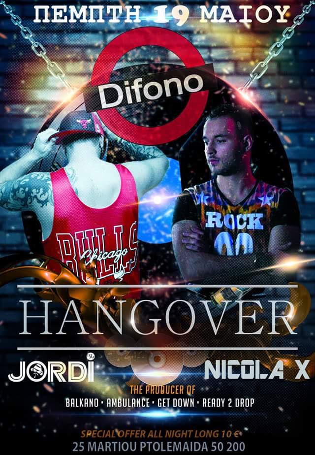 Hangover με Jordi & Nicola X, στο bar Difono στην Πτολεμαΐδα, την Πέμπτη 19 Μαΐου