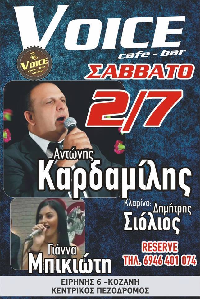 Ο Αντώνης Καρδαμίλης Live στο Voice bar στην Κοζάνη, το Σάββατο 2 Ιουλίου