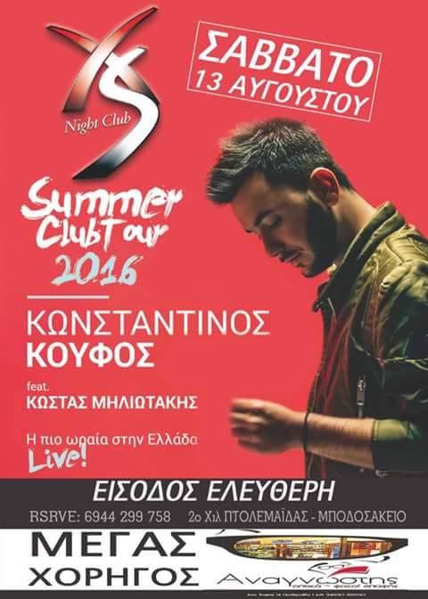 Ο Κωνσταντίνος Κουφός στο Xs night club στην Πτολεμαΐδα, το Σάββατο 13 Αυγούστου
