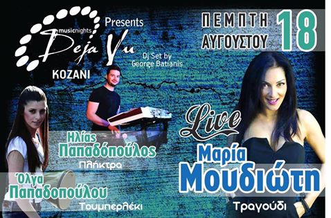 Η Μαρία Μουδιώτη στο De ja vu live στην Κοζάνη, την Πέμπτη 18 Αυγούστου