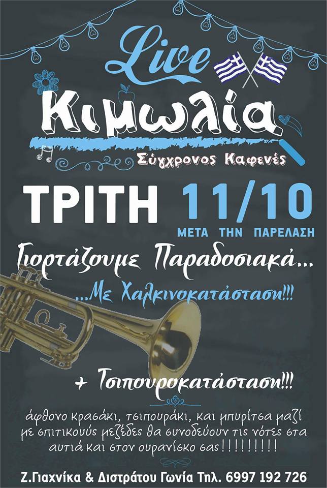 Παραδοσιακό γλέντι με χάλκινα στον καφενέ Κιμωλία στην Κοζάνη, την Τρίτη 11 Οκτωβρίου