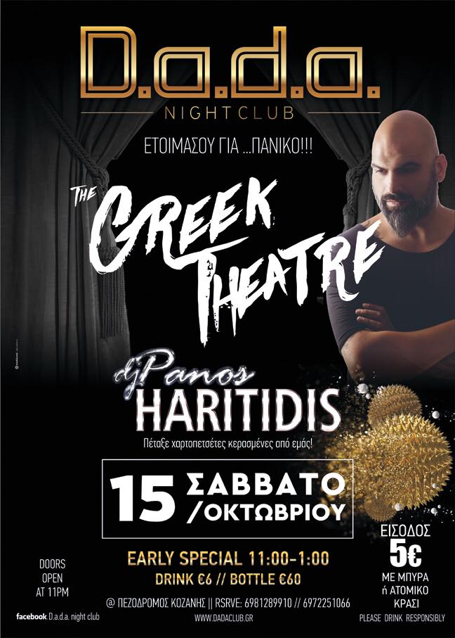 “The Greek Theatre” με τον Πάνο Χαριτίδη στο D.a.d.a. club στην Κοζάνη, το Σάββατο 15 Οκτωβρίου .