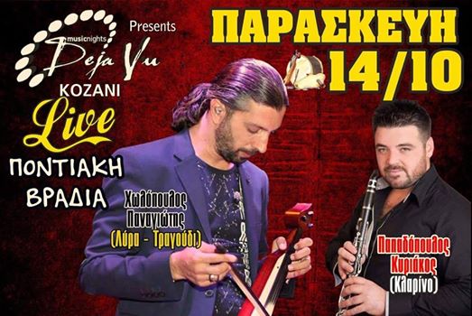 Ποντιακή βραδιά με τον Παναγιώτη Χωλόπουλο στο De ja vu live στην Κοζάνη, την Παρασκευή 14 Οκτωβρίου .