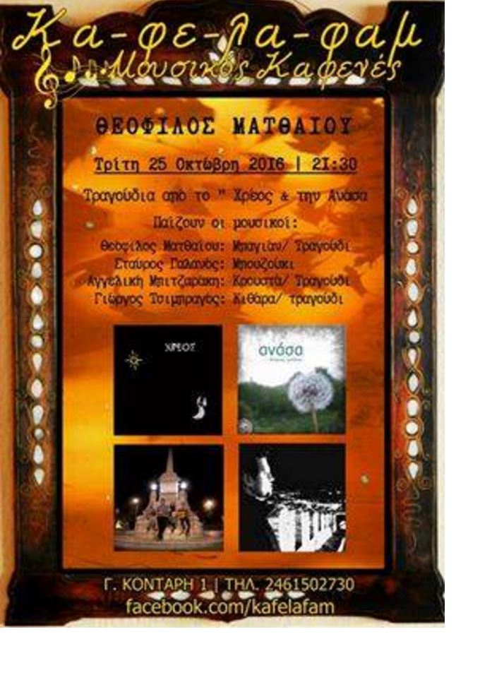 Ο Θεόφιλος Ματθαίος στο ΚΑ-ΦΕ-ΛΑ-ΦΑΜ στην Κοζάνη, την Τρίτη 25 Οκτωβρίου