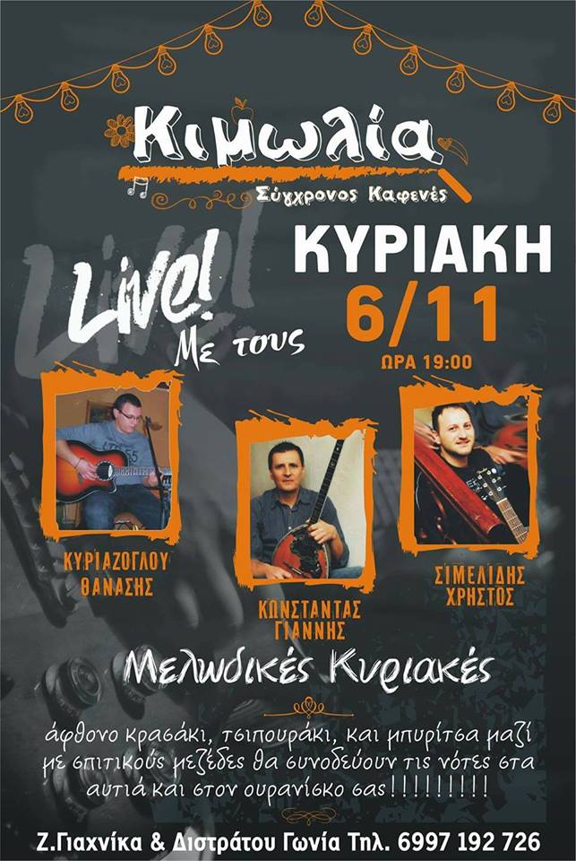 Ζωντανή μουσική την Κυριακή 6 Νοεμβρίου στον Καφενέ Κιμωλία στην Κοζάνη