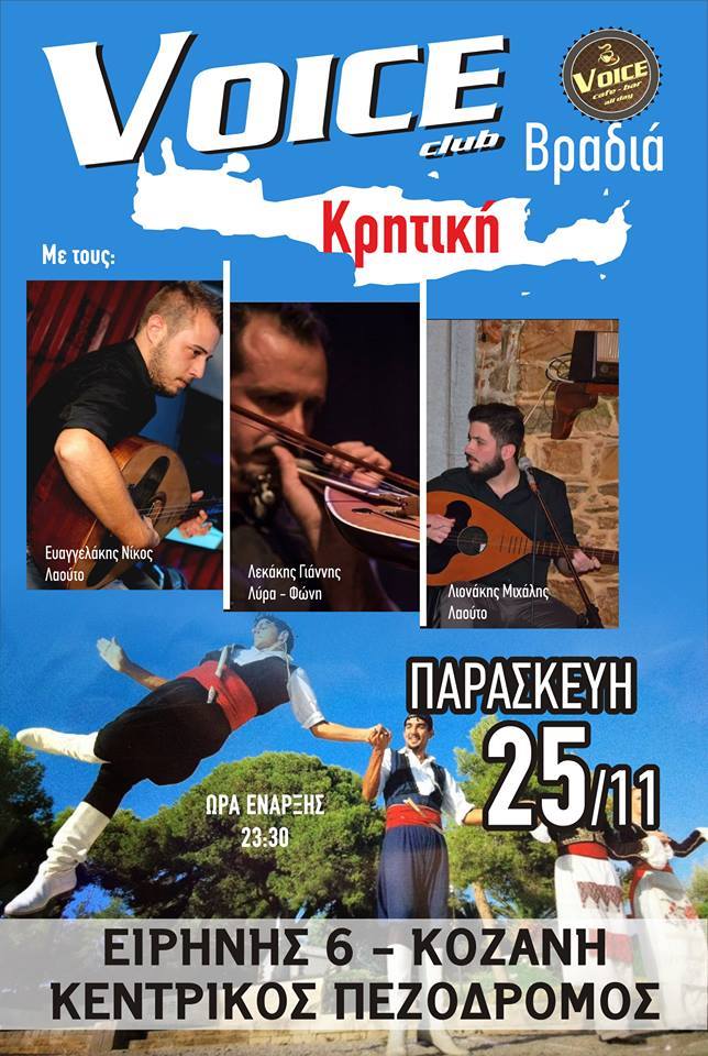 Κρητική βραδιά στο Cafe-bar Voice στην Κοζάνη την Παρασκευή 25 Νοεμβρίου