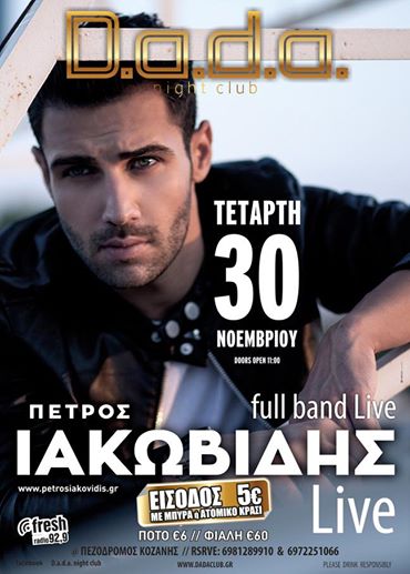 Ο Πέτρος Ιακωβίδης Live στο D.a.d.a. club στην Κοζάνη, την Τετάρτη 30 Νοεμβρίου