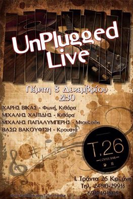 Unplugged live στ T26 Coffee Bar στην Κοζάνη, την Πέμπτη 8 Δεκεμβρίου