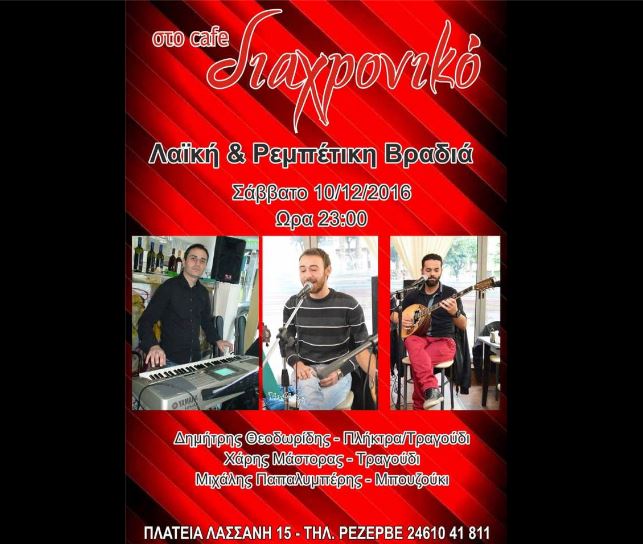 Λαϊκή και Ρεμπέτικη βραδιά στο cafe Διαχρονικό στην Κοζάνη, το Σάββατο 10 Δεκεμβρίου.