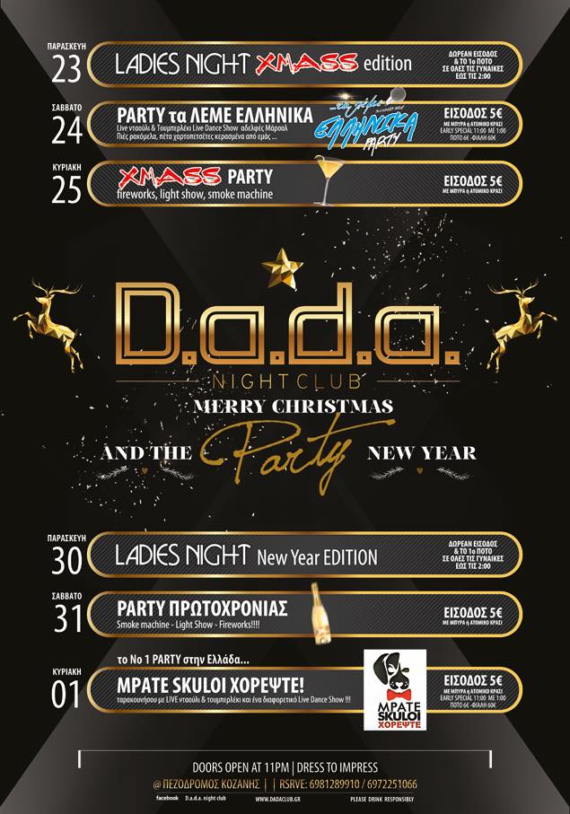 CHRISTMAS PARTIES στο D.a.d.a. club στην Κοζάνη, 23/12-25/12 & 30/12-1/1