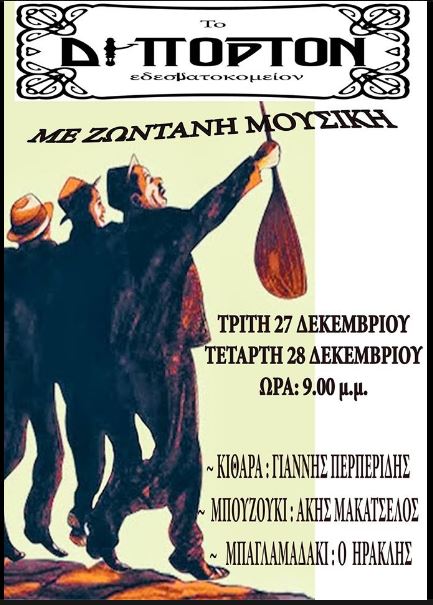 Ζωντανή μουσική την Τρίτη 27 & την Τετάρτη 28 Δεκεμβρίου στο “Δίπορτον” στην Πτολεμαΐδα