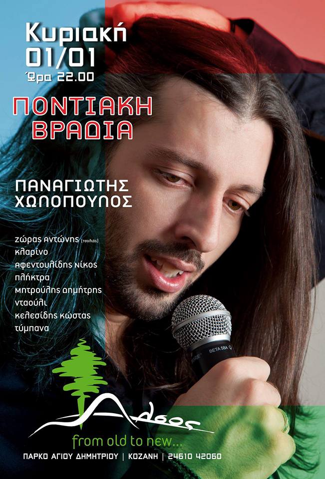 Ποντιακή βραδιά την Πρωτοχρονιά με τον Παναγιώτη Χωλόπουλο στο “Άλσος” στην Κοζάνη.