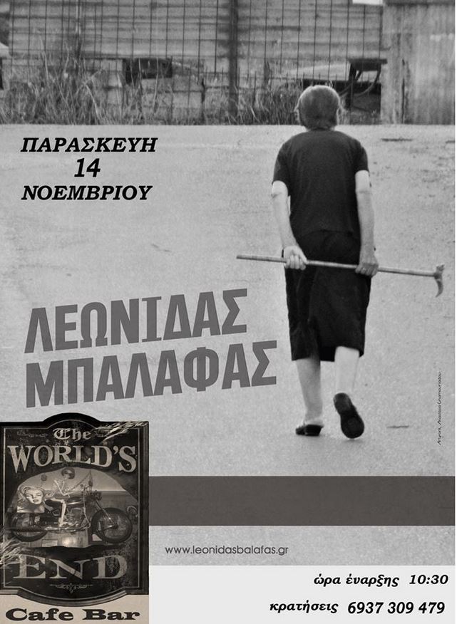Ο Λεωνίδας Μπαλάφας την Παρασκευή 14 Νοεμβρίου cafe – bar “Το τέλος του κόσμου” στην Πτολεμαΐδα.