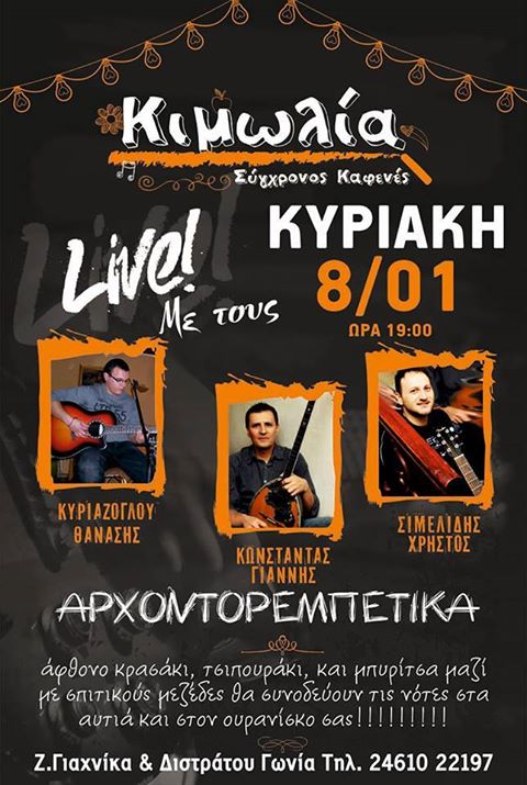 Live με Αρχοντορεμέτικα στην Κιμωλία στην Κοζάνη, την Κυριακή 8 Ιανουαρίου