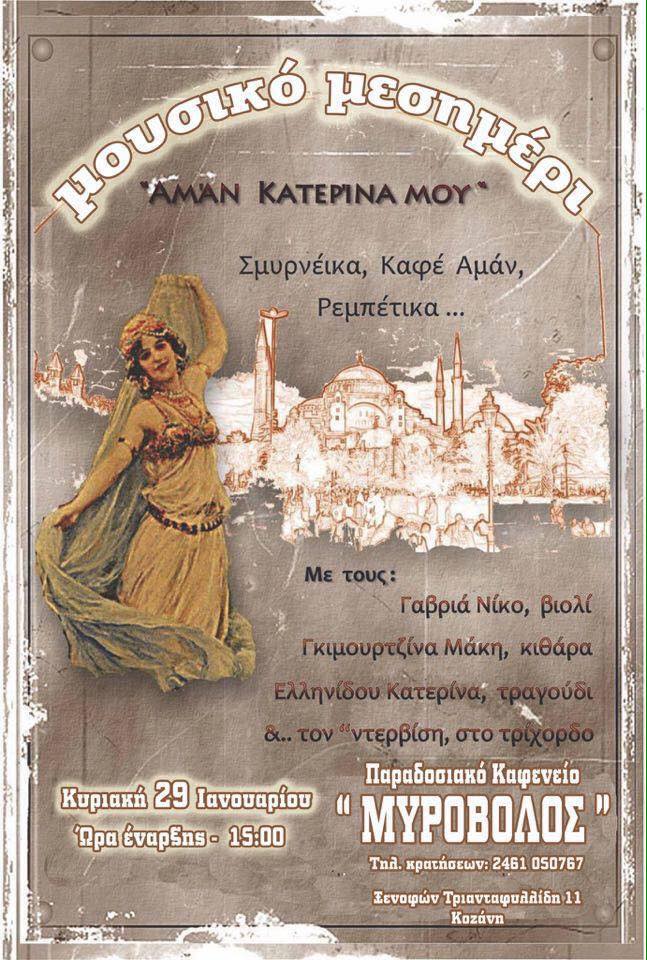 Μουσικό μεσημέρι, την Κυριακή 29 Ιανουαρίου, στο καφενείο Μυροβόλο στην Κοζάνη