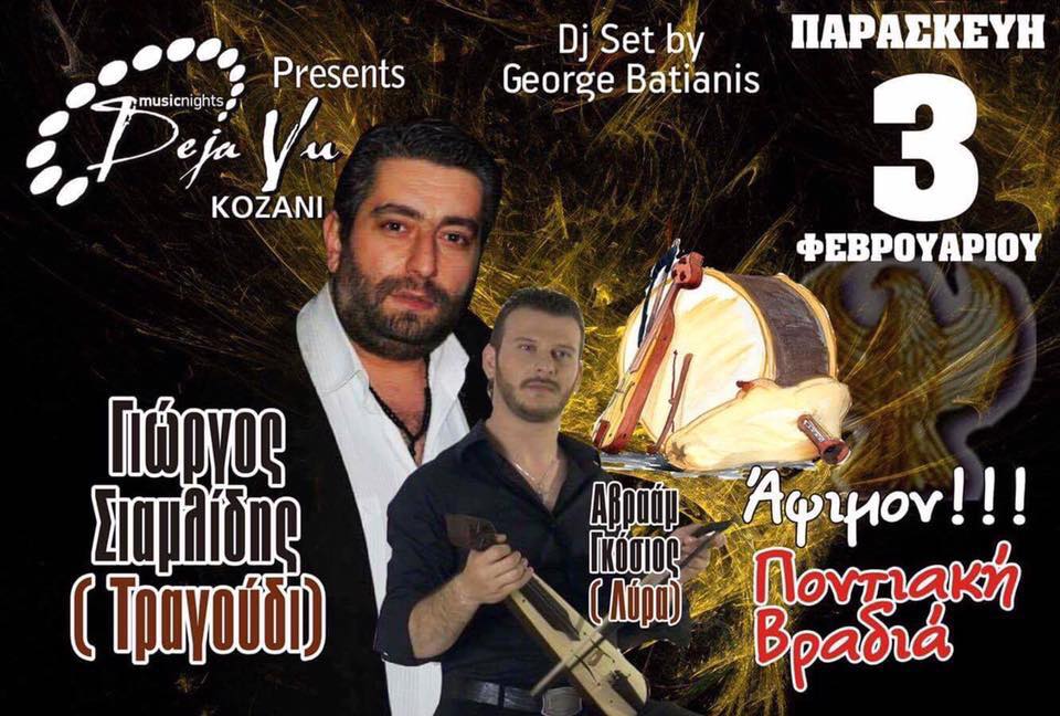Ποντιακή βραδιά με τον Γιώργο Σιαμλίδη, την Παρασκευή 3 Φεβρουαρίου στο De ja vu στην Κοζάνη .