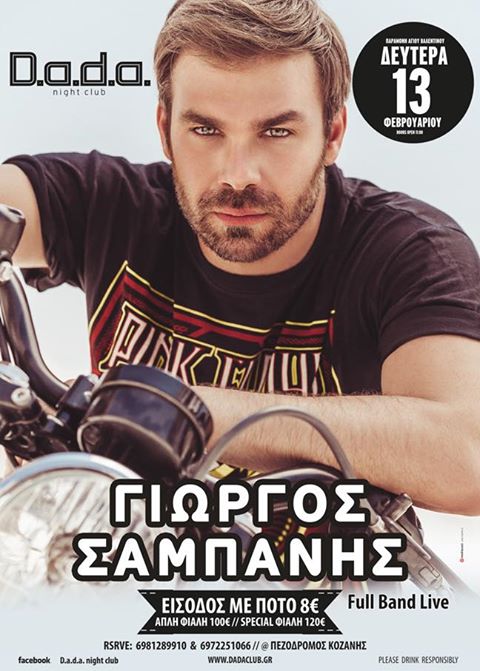 O Γιώργος Σαμπάνης live στο D.a.d.a. club στην Κοζάνη, τη Δευτέρα 13 Φεβρουαρίου