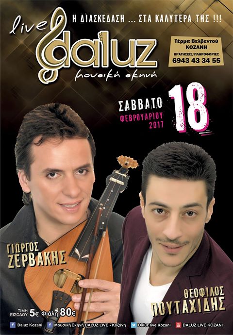 O Θεόφιλος Πουταχίδης και ο Γιώργος Ζερβάκης στο Daluz live στην Κοζάνη, το Σάββατο 18 Φεβρουαρίου .