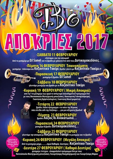 Όλα τα αποκριάτικα events του Bo cafe στην Κοζάνη από το Σάββατο 11/2 έως τη Δευτέρα 27/2.