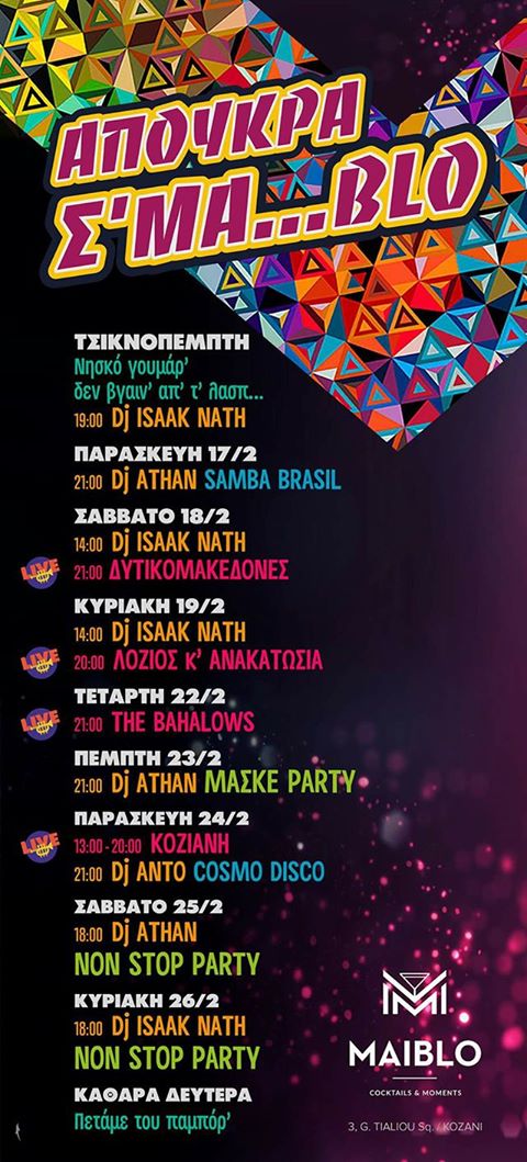 ΑΠΟΥΚΡΑ Σ’ΜΑ…BLO στην Κοζάνη, με “Δυτικομακεδονές”, “Λόζιος κ’ Ανακατωσιά”, “The Bahalows”…..
