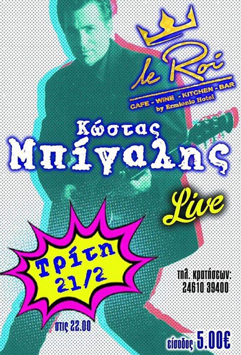 Ο Κώστας Μπίγαλης Live στο Le Roi bar στην Κοζάνη, την Τρίτη 21 Φεβρουαρίου
