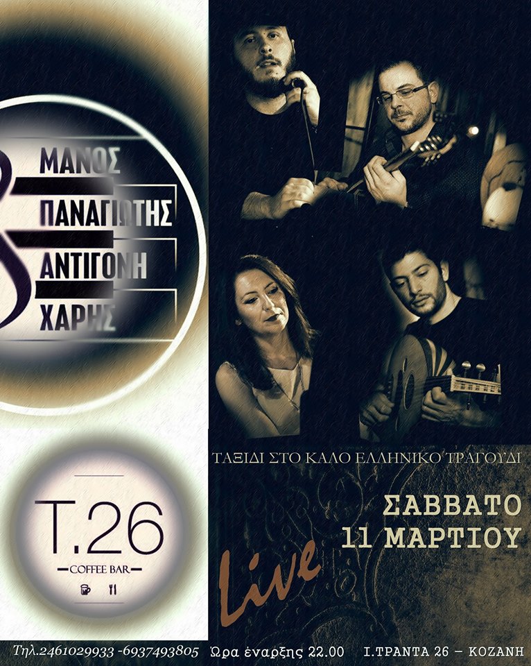 Ταξίδι στο καλό Ελληνικό τραγούδι στο Τ26 στην Κοζάνη, το Σάββατο 11 Μαρτίου