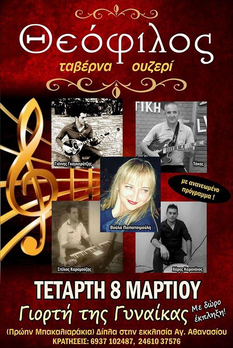 Ζωντανή μουσική στην “Γιορτή της Γυναίκας”, με δώρο έκπληξη στην ταβέρνα “Θεόφιλος” στην Κοζάνη, την Τετάρτη 8 Μαρτίου