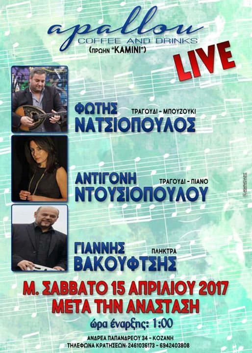 Ζωντανή μουσική βραδιά, μετά την Ανάσταση, στο bar Apallou στην Κοζάνη