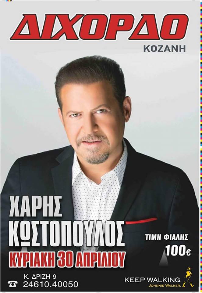 Ο Χάρης Κωστόπουλος στο Δίχορδο Live στην Κοζάνη, την Κυριακή 30 Απριλίου