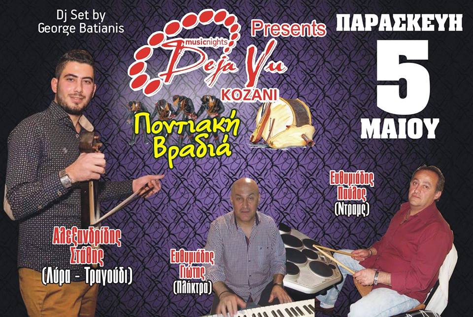 Ποντιακή βραδιά στο De ja vu στην Κοζάνη, την Παρασκευή 5 Μαΐου .