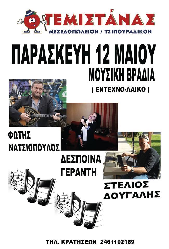 Μουσική βραδιά στο μεζεδοπωλείο “Γεμιστάνας στην Κοζάνη , την Παρασκευή 12 Μαΐου