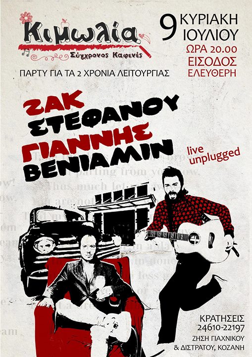 Ζακ Στεφάνου και Γιάννης Βενιαμιν live unplugged στον Καφενέ Κιμωλία στην Κοζάνη, την Κυριακή 9 Ιουλίου