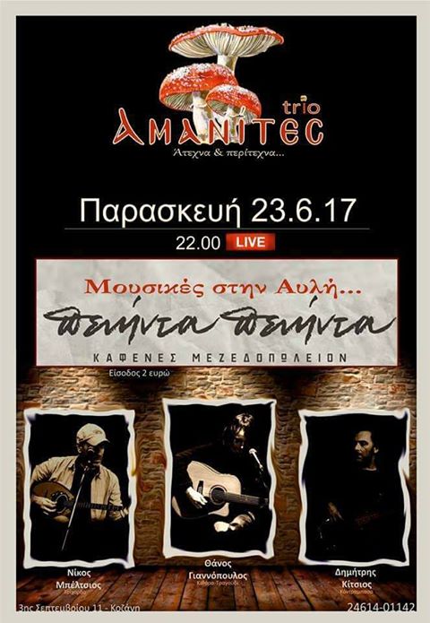 Trio Αμανίτες Live στο μεζεδοπωλείο 50-50 στην Κοζάνη, την Παρασκευή 23 Ιουνίου .