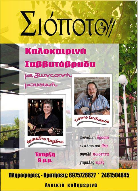 Καλοκαιρινά Σαββατόβραδα με ζωντανή μουσική στο “Σιοποτα” στην Κοζάνη .