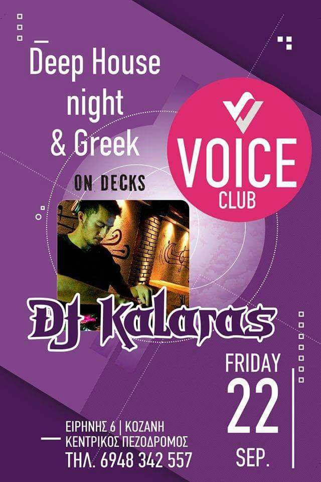 Deep house and greek night στο Cafe-bar Voice στον πεζόδρομο Κοζάνης, την Παρασκευή 22 Σεπτεμβρίου .