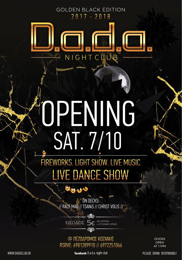 Opening του D.a.d.a. CLUB στην Κοζάνη, το Σάββατο 7 Οκτωβρίου .