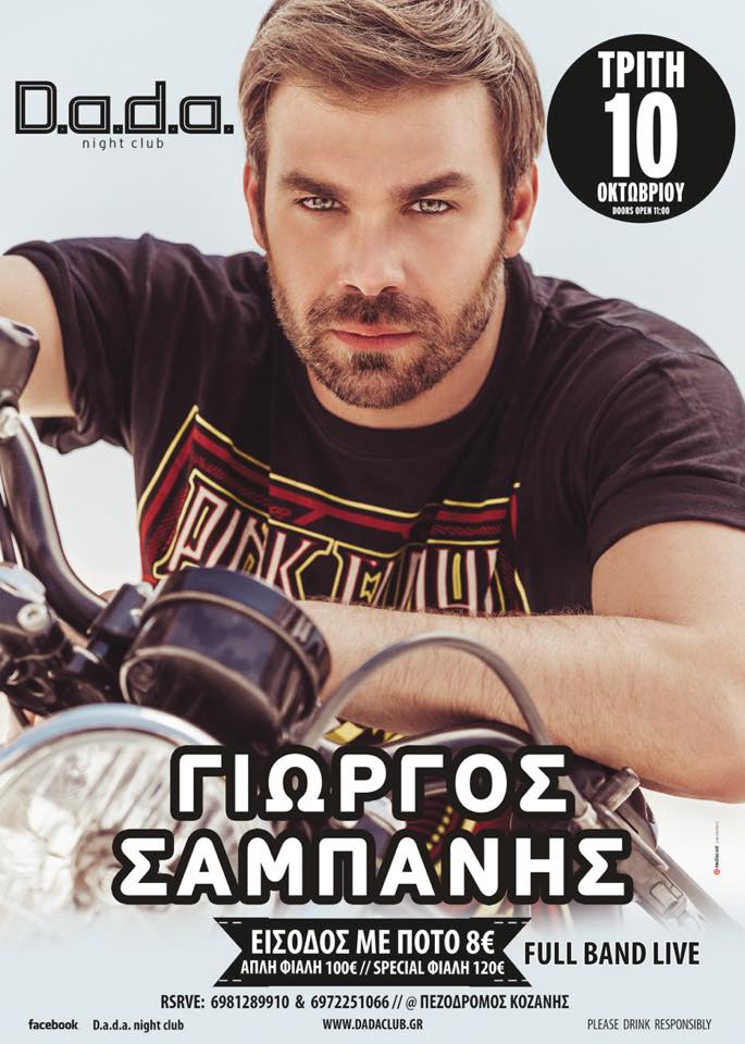Ο Γιώργος Σαμπάνης Live στο Da.d.a. club στην Κοζάνη, την Τρίτη 10 Οκτωβρίου .