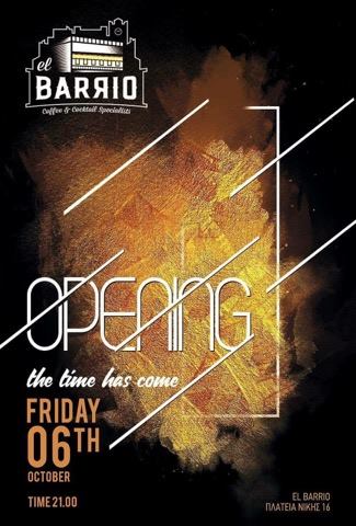 Opening του El Barrio “Coffee & Cocktail Specialists” στην Κοζάνη, την Παρασκευή 6 Οκτωβρίου .