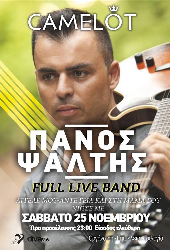 Ο Πάνος Ψάλτης live στο Camelot bar στην Κοζάνη, το Σάββατο 25 Νοεμβρίου