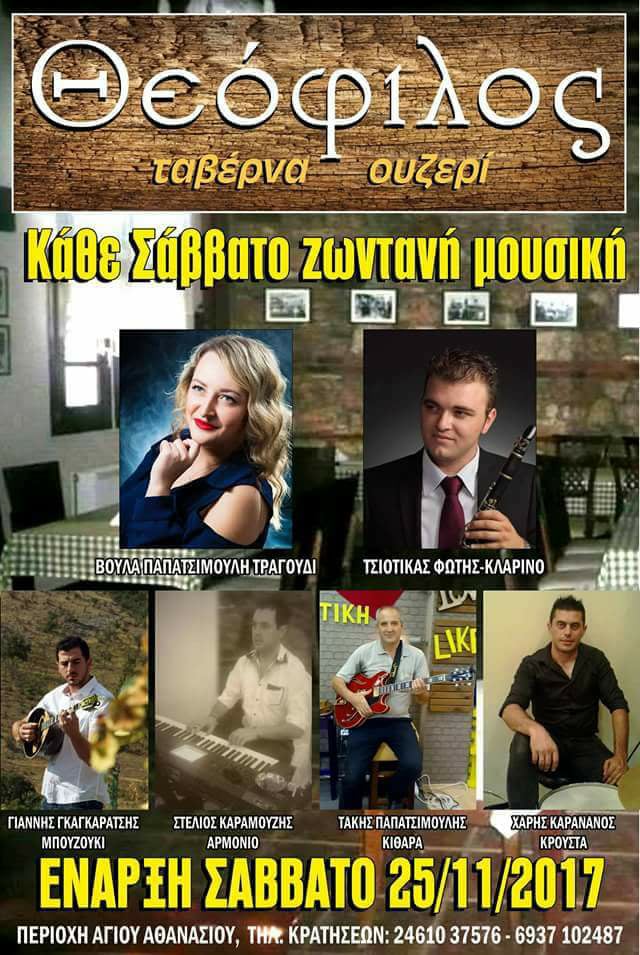 Ζωντανή μουσική στην ταβέρνα Θεόφιλος στην Κοζάνη, το Σάββατο 2 Δεκεμβρίου .