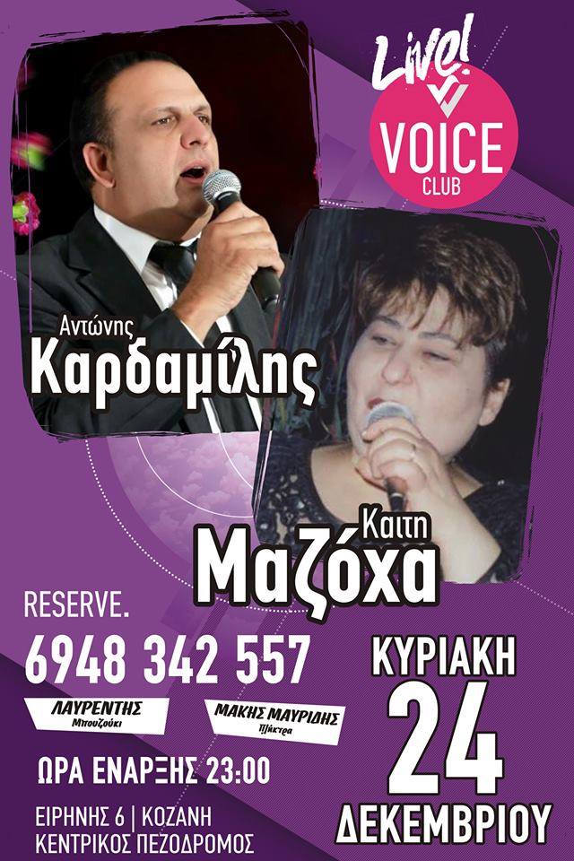 Ο Α. Καρδαμίλης η Κ. Μαζόχα στο Voice bar στην Κοζάνη, την Κυριακή 24 Δεκεμβρίου .