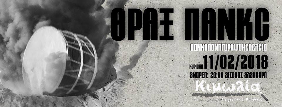 ΘΡΑΞ ΠΑΝΚC live στο καφέ μεζεδοπωλείο Κιμωλία στην Κοζάνη, την Κυριακή (Μικρή Αποκριά) 11 Φεβρουαρίου