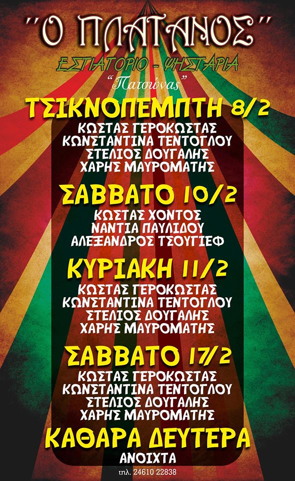 Αποκριάτικο γλέντι στην ταβέρνα “Ο Πλάτανος” στην Κοζάνη- Έναρξη την Τσικνοπέμπτη .