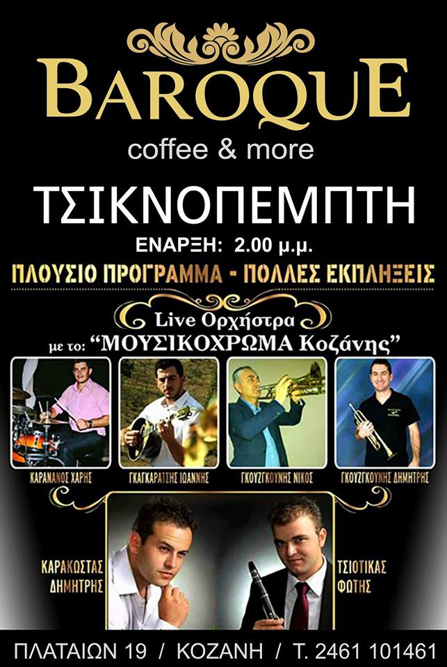 Τσικνοπέμπτη με πλούσιο ζωντανό πρόγραμμα στο Baroque coffee στην Κοζάνη .
