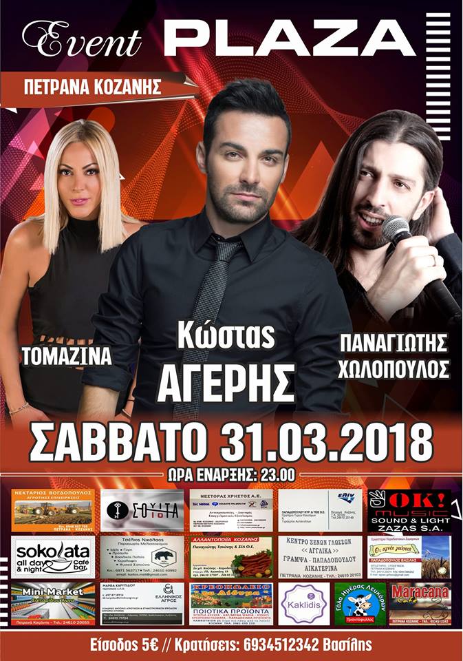 Ο Κώστας Αγέρης, ο Παναγιώτης Χωλόπουλος και η Τομαζίνα στο Event Plaza στα Πετρανά, το Σάββατο 31 Μαρτίου