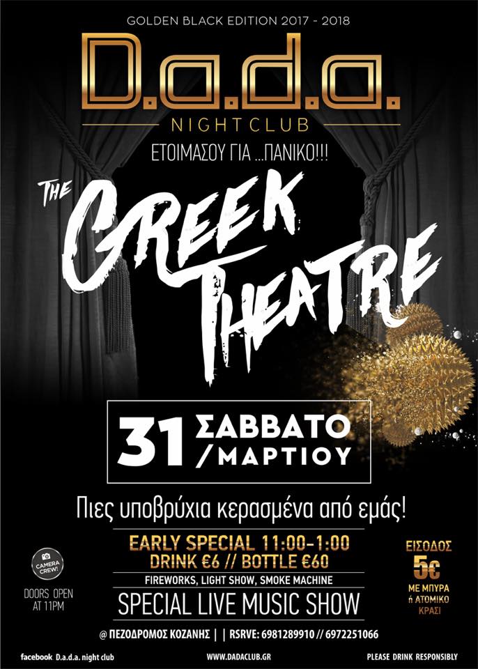 “The Greek Theatre” στο D.a.d.a. club στην Κοζάνη, το Σάββατο 31 Μαρτίου .