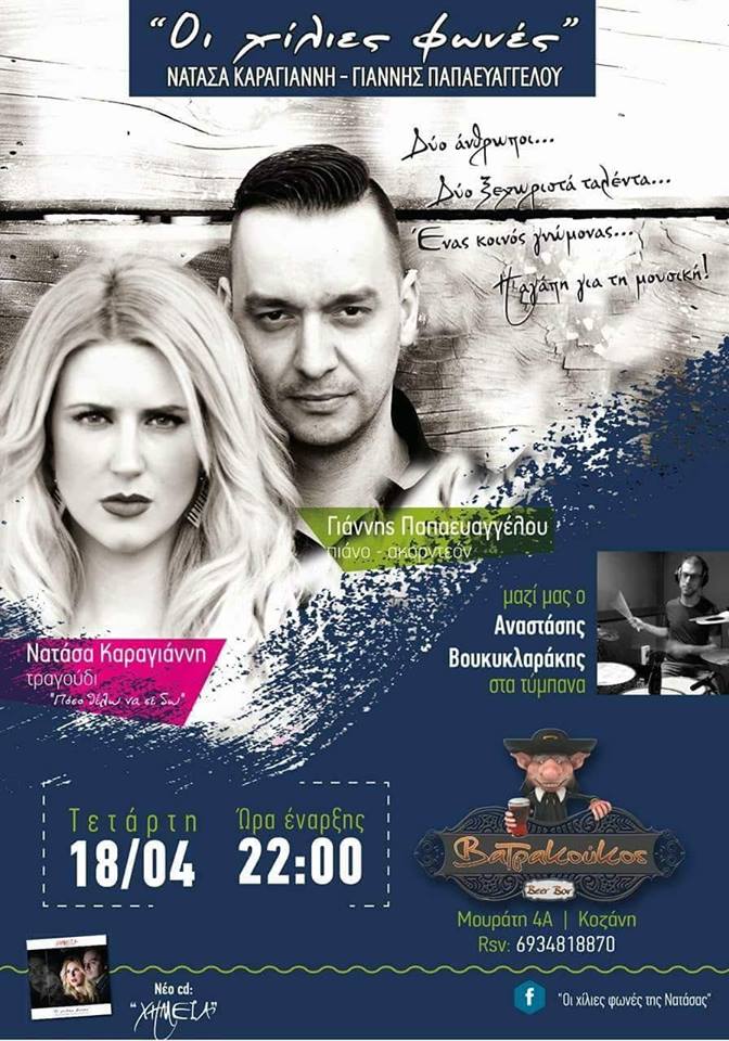 “Οι χίλιες φωνές” Live στο bar Βατρακούκος στην Κοζάνη, την Τετάρτη 18 Απριλίου .