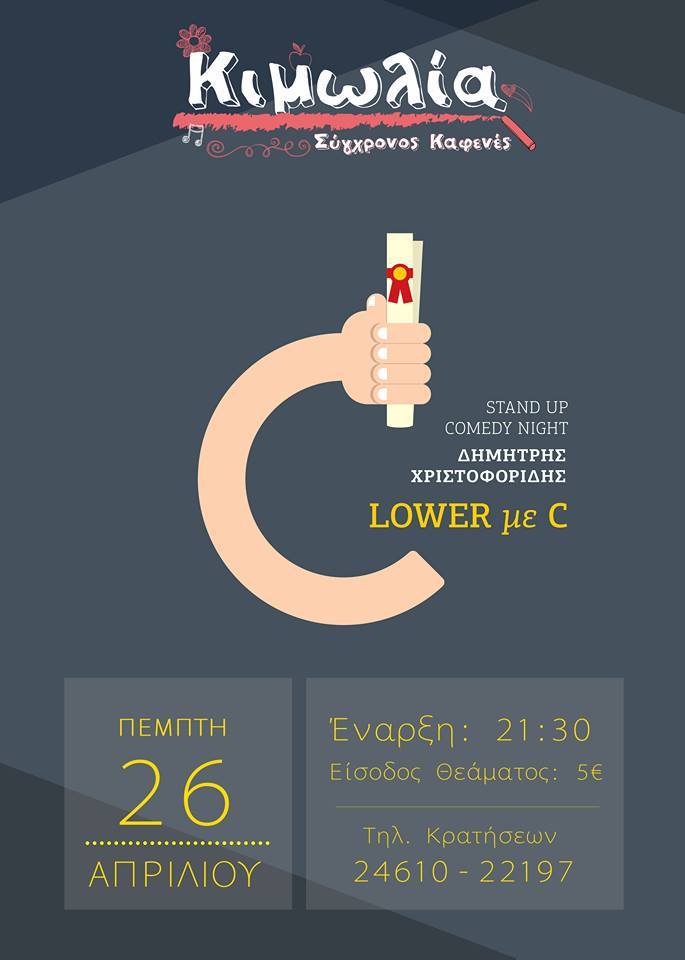 “lower με C” Stand up comedy night στον Σύγχρονο Καφενέ “Κιμωλία” στην Κοζάνη, την Πέμπτη 26 Απριλίου .